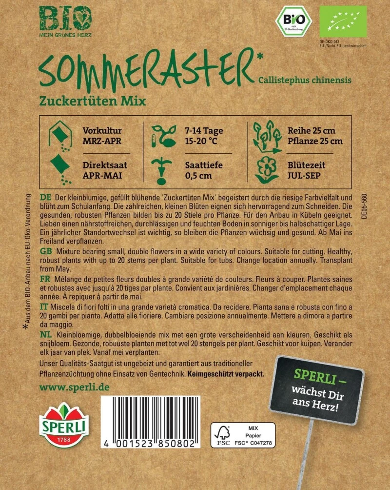 Der kleinblumige, gefüllt blühende ‚Zuckertüten Mix‘ begeistert durch die riesige Farbvielfalt und blüht zum Schulanfang. Die zahlreichen, kleinen Blüten eignen sich hervorragend zum Schneiden. Die gesunden, robusten Pflanzen bilden bis zu 20 Stiele pro Pflanze. Für den Anbau in Kübeln geeignet. Lieben einen nährstoffreichen, durchlässigen und feuchten Boden in sonniger bis halbschattiger Lage. Ein jährlicher Standortwechsel ist wichtig, so bleiben die Pflanzen wüchsig und gesund. Ab Mai ins Freiland verpflanzen.