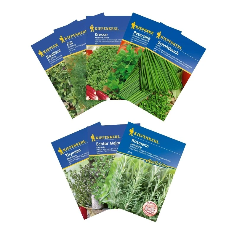 8 verschiedene Kräutersorten aus dem Kiepenkerl-Sortiment
