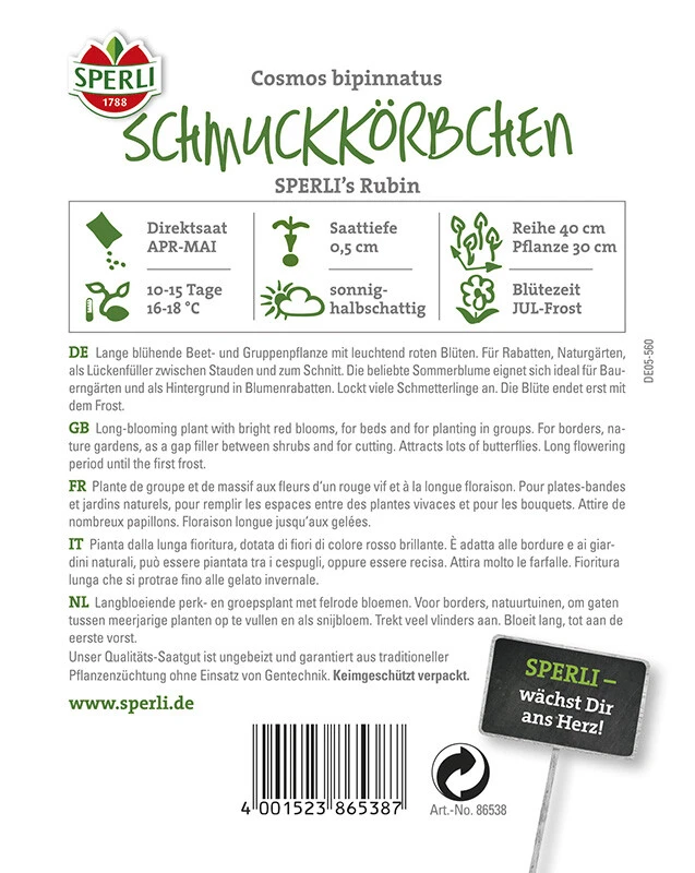 SPERLI’s Rubin ist eine einjährige, starkwüchsige, großblumige Pflanze mit tiefdunklen roten Blüten und feingefiedertem Laub.